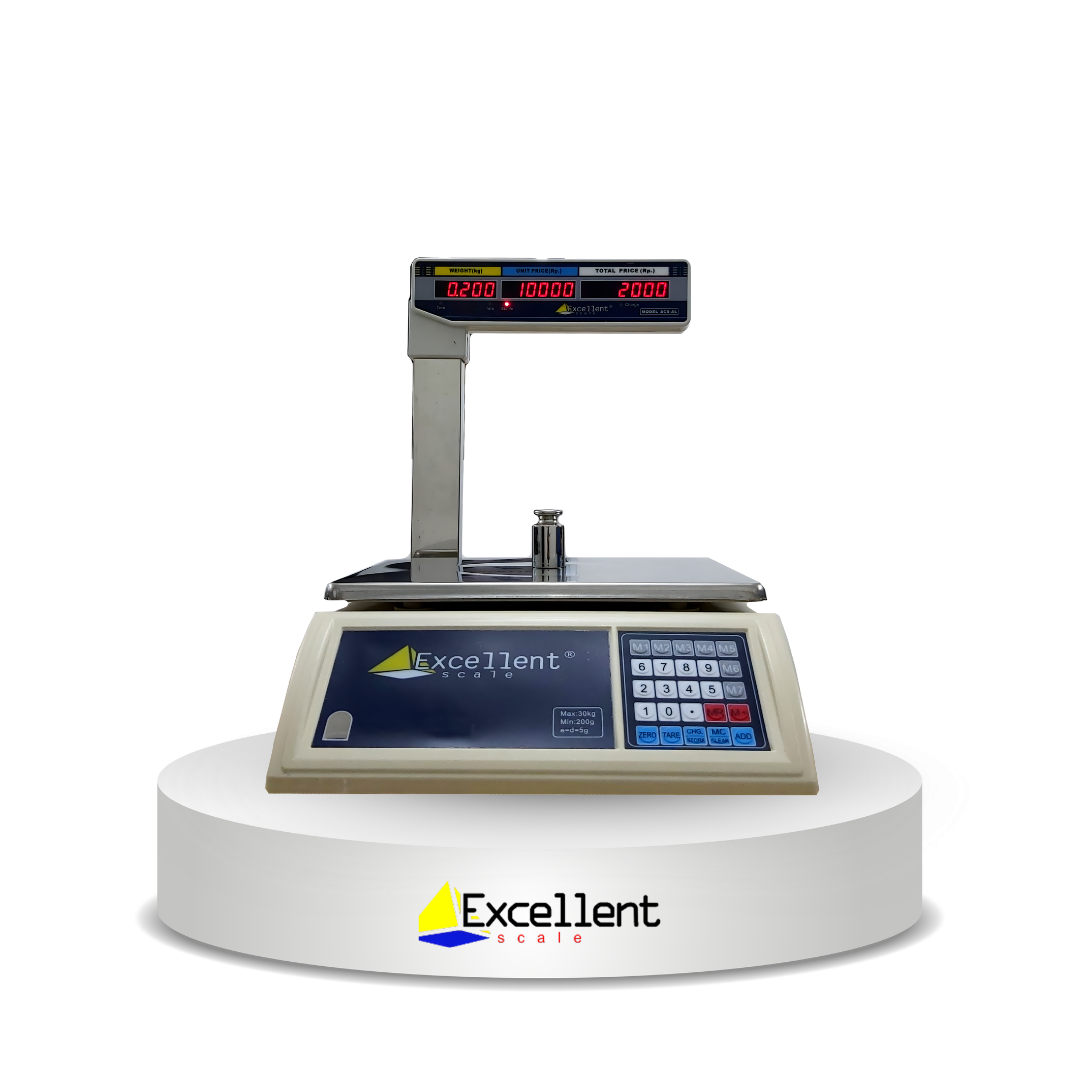 Timbangan Buah Digital Price Computing Scale EXCELLENT ACS – AL ialah timbangan buah digital satuan yang dapat menghitung sekaligus membantu pekerjaan Anda dengan mudah dan menampilkan data secara digital. Untuk Informasi Tentang harga timbangan segera hubungi kami untuk memperoleh informasi lengkap.